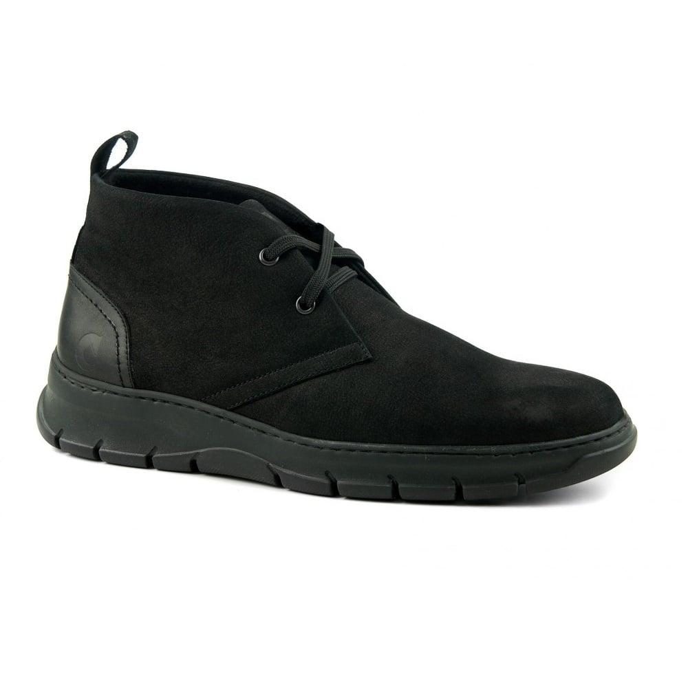Commanchero μαύρο δερμάτινο νάμπουκ μποτάκι με κορδόνι, δερμάτινη λεπτομέρεια στο πίσω μέρος, στο εσωτερικό του ενίσχυση με μαλακή φόδρα microfiber suede, σόλα EVA EXTRA LIGHT Innovative Sole και αποσπώμενο πάτο ανατομικό microtex. Άνετη φόρμα που αγκαλιάζει το πόδι. Για πολύ μαλακό και ξεκούραστο βάδισμα.