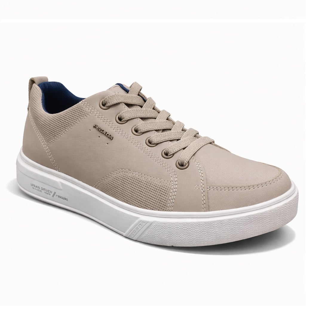 Pegada ανδρικό sneaker με λαστιχένια κορδόνια σε γκρί χρώμα. Δερμάτινο με αντιιδρωτική φόδρα και αφρώδες μαλακό πατάκι. Σόλα ανατομική, πολύ ελαφριά και αντιολισθητική. Για πολύ μαλακό και άνετο βάδισμα.
