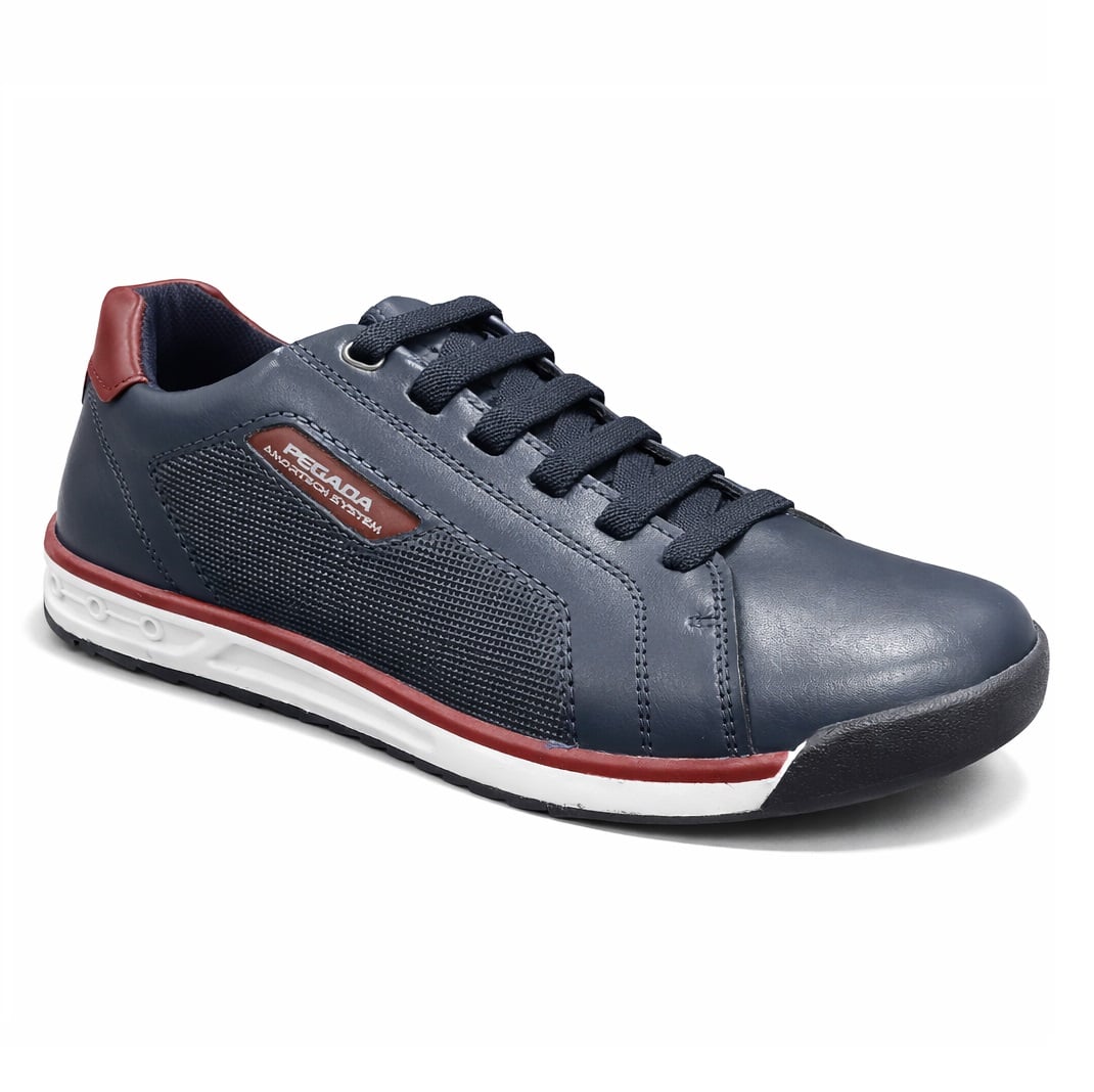 Pegada ανδρικό sneaker με λαστιχένια κορδόνια για καλύτερη εφαρμογή σε μπλε χρώμα. Δερμάτινο με αντιιδρωτική φόδρα και αφρώδες μαλακό πατάκι. Σόλα ανατομική, πολύ ελαφριά και αντιολισθητική. Για πολύ μαλακό και άνετο βάδισμα.