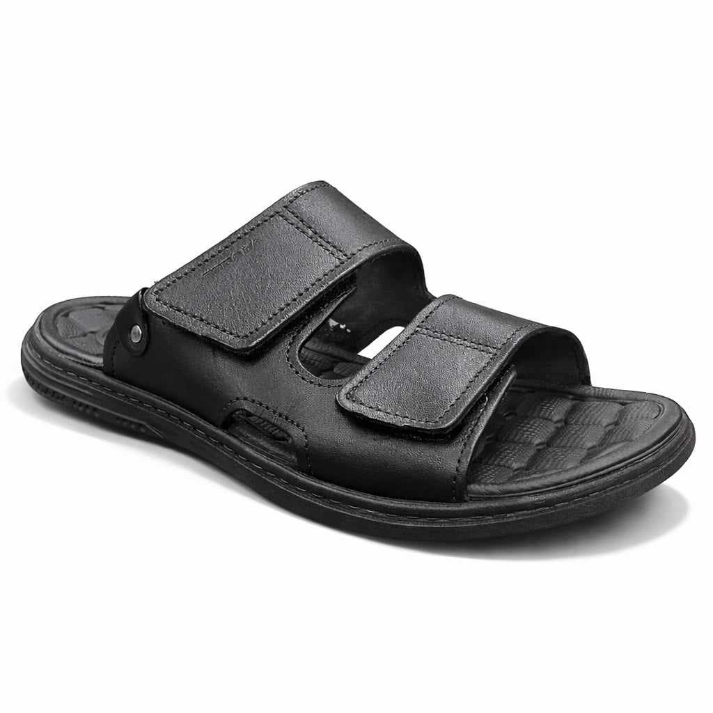 Pegada ανδρική παντόφλα  με σκρατς στο πλάι για καλύτερη εφαρμογή σε μαύρο χρώμα. Δερμάτινη, με δερμάτινη φόδρα και μαλακό, αφρώδες πατάκι πατάκι. Σόλα ελαφριά ανατομική και αντιολισθητική. Για πολύ άνετο βάδισμα.