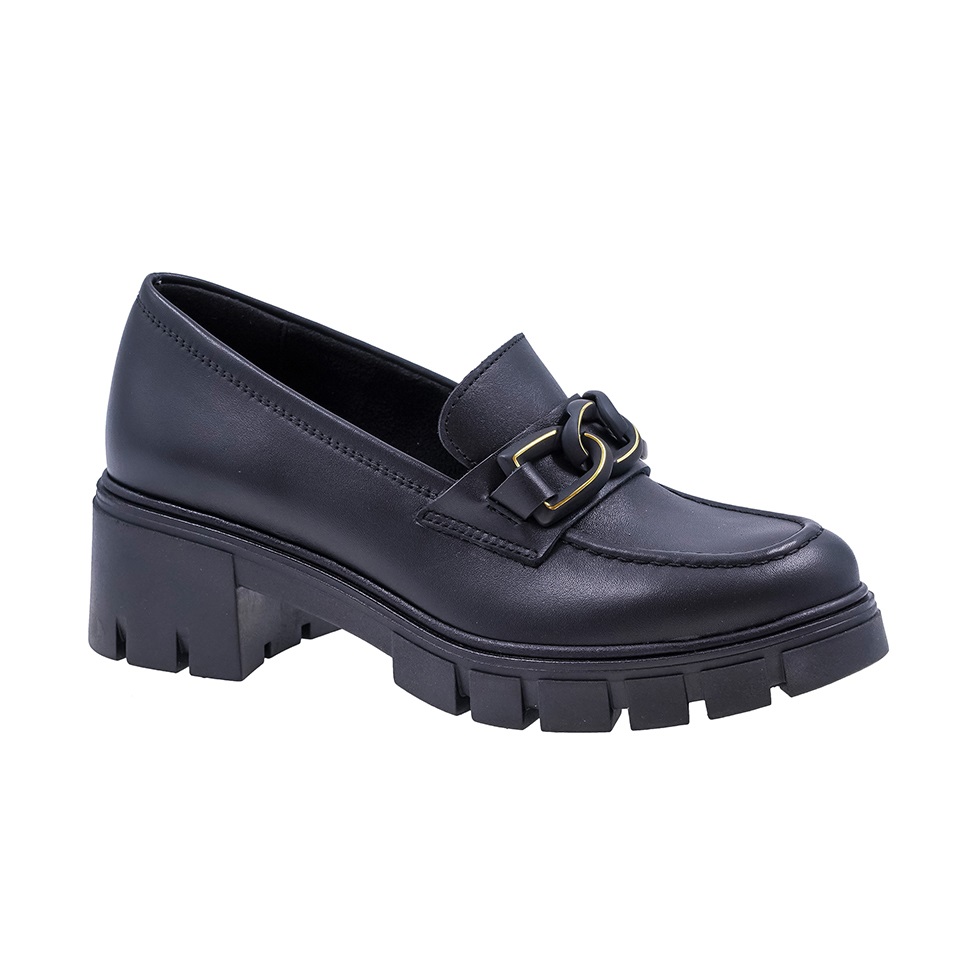 Ragazza γυναικείο μοκασίνι σε χρώμα μαύρο. Δερμάτινο με micro fibra φόδρα αντιδρωτική και δερμάτινο πατάκι. Σόλα ανατομική αντιολισθητική. Ύψος τακουνιού 5,5cm.