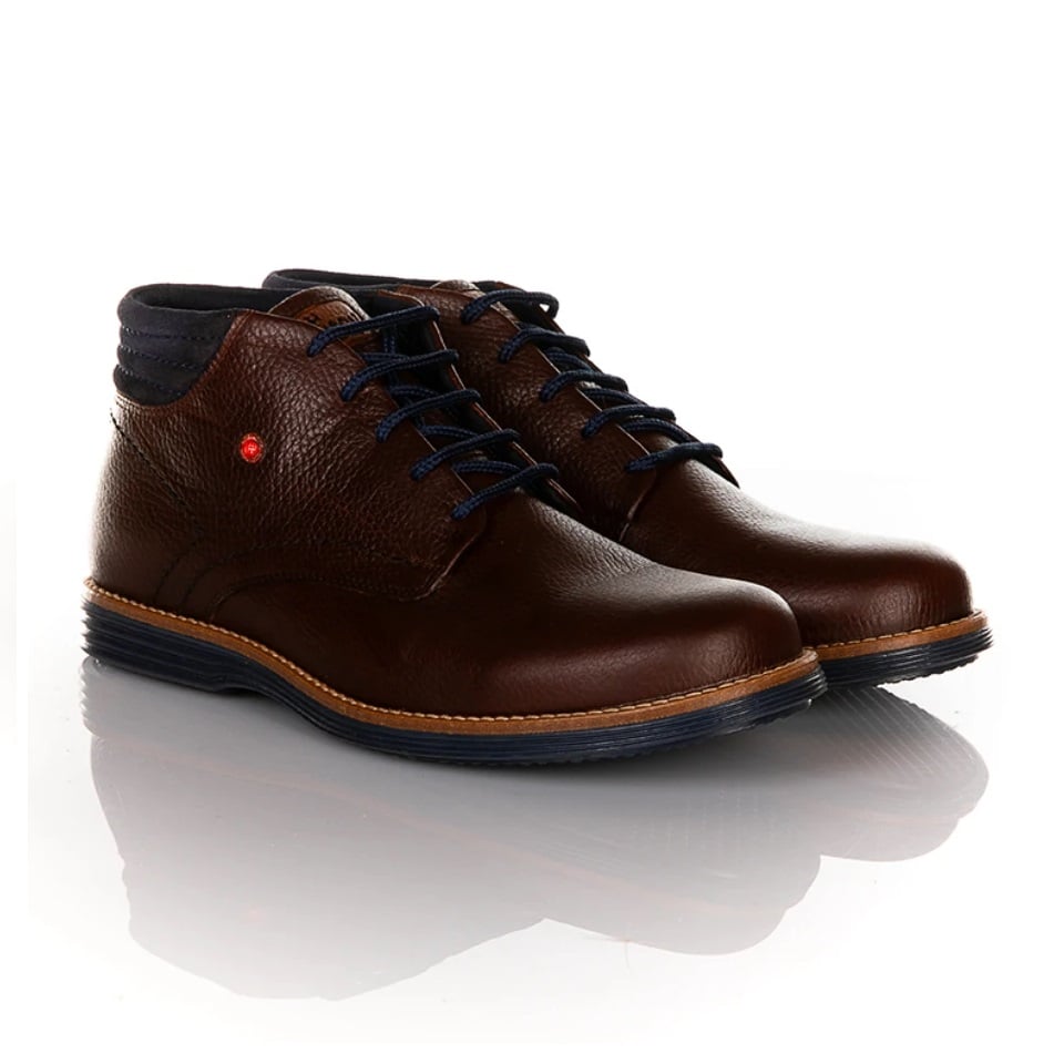 Robinson ανδρικό μποτάκι με κορδόνι σε καφέ χρώμα. Δερμάτινο, με ζεστή υφασμάτινη φόδρα και μαλακό πατάκι. Σόλα λαστιχένια, ανατομική και αντιολισθητική. Για πολύ μαλακό και άνετο βάδισμα.