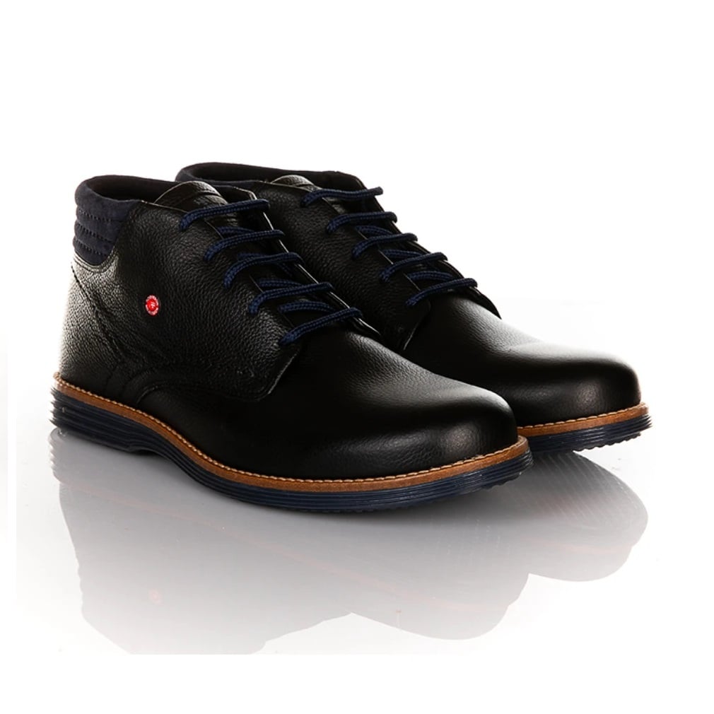 Robinson ανδρικό μποτάκι με κορδόνι σε μαύρο χρώμα. Δερμάτινο, με ζεστή υφασμάτινη φόδρα και μαλακό πατάκι. Σόλα λαστιχένια, ανατομική και αντιολισθητική. Για πολύ μαλακό και άνετο βάδισμα.