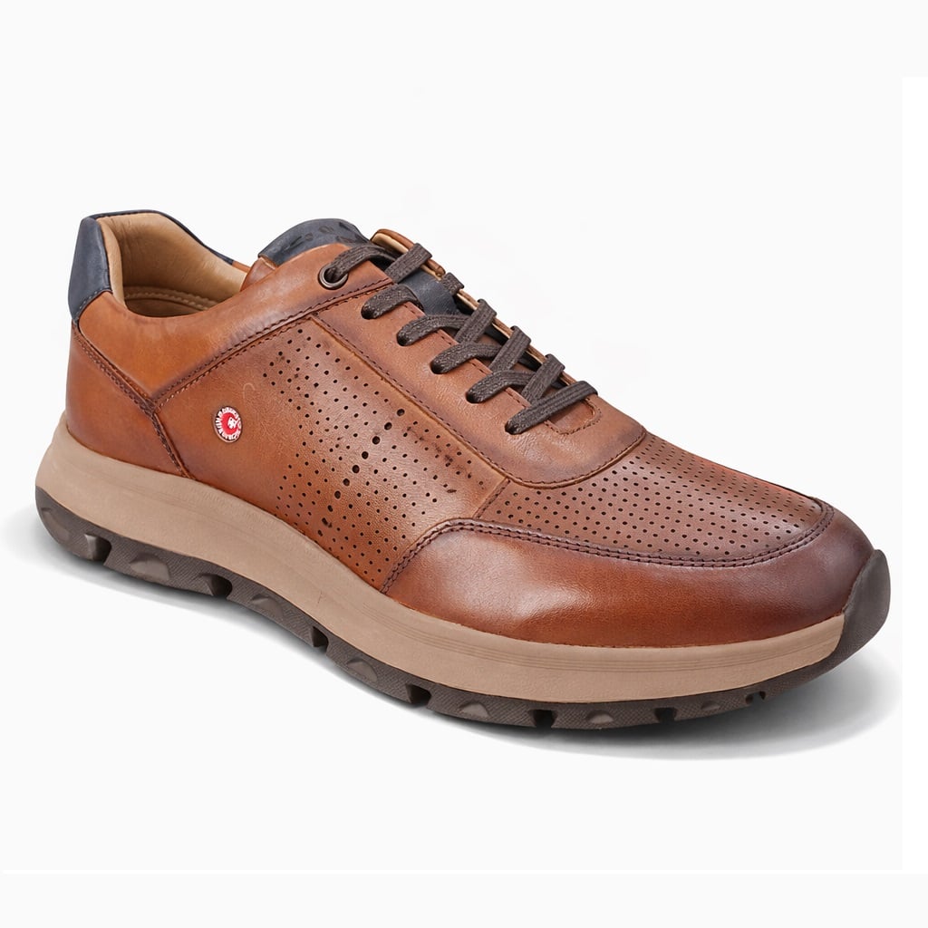 Rpobinson ανδρικό sneaker με κορδόνι σε ταμπά χρώμα. Δερμάτινο εξωτερικά με δερμάτινη φόδρα και μαλακό, αντιιδρωτικό πατάκι. Σόλα ανατομική, αντιολισθητική για πολύ άνετο και μαλακό βάδισμα.